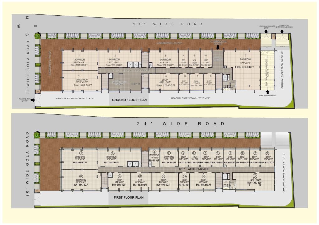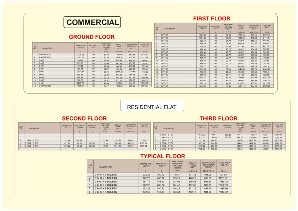 - Basement parking space or Covered Car Parking space on ownership basis separately for commercial and residential