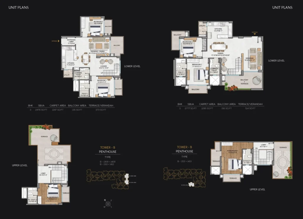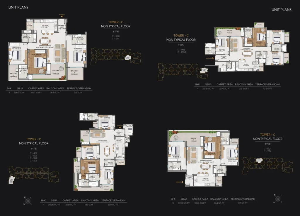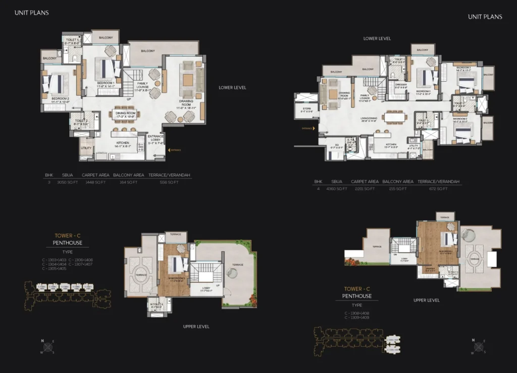 - Spacious Luxury Homes: Offers expansive 3 & 4 BHK apartments (1443 – 4360 sq.ft.), designed with modern layouts and premium finishes for elevated urban living.